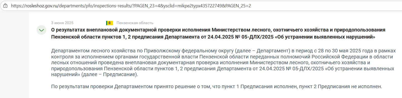 Примечательно, что в 2025 году Департамент лесного хозяйства по Приволжскому федеральному округу провел три внеплановые выездные проверки пензенского министерства лесного хозяйства. В ходе апрельской проверки были выявлены нарушения, а в конце мая выяснилось, что они до сих пор не устранены. Вскоре мы узнаем, чего они касались.